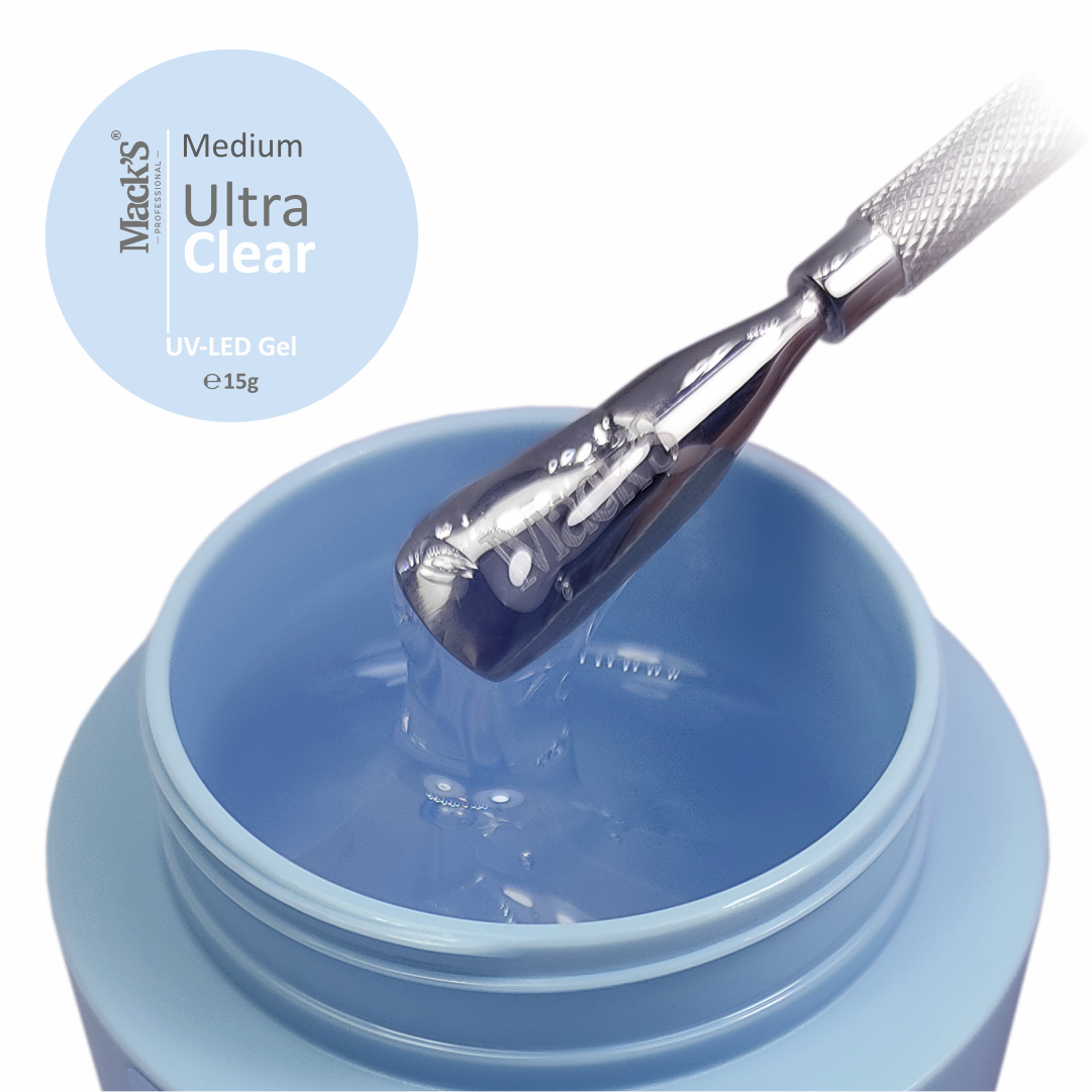 Ultra Clear este un gel modelator de consistenta medie,cauciucat.Are adrenta buna cu placa unghiala si il putem considera un gel cu 2 faze ( baza si modelare ). Pentru o aderenta sigura si protectoare va recomandam sa aplicati Rubber Base Gel.Acest tip de gel se recomnda pentru remodelarea ,intretinerea ,acoperirea unghiilor cu gel ,la modelarea unghiilor pe sablon sau tips – lungimi de salon ( mici si medii ) . Nu se recomanda pentru constructia unghiilor de forme extreme. Este un gel care nu arde in lampa sau arde nesemnificativ.Timp de polimerizare in lampa UV- 2 minute,in lampa LED – 60 sec stratul modelator cu apex .